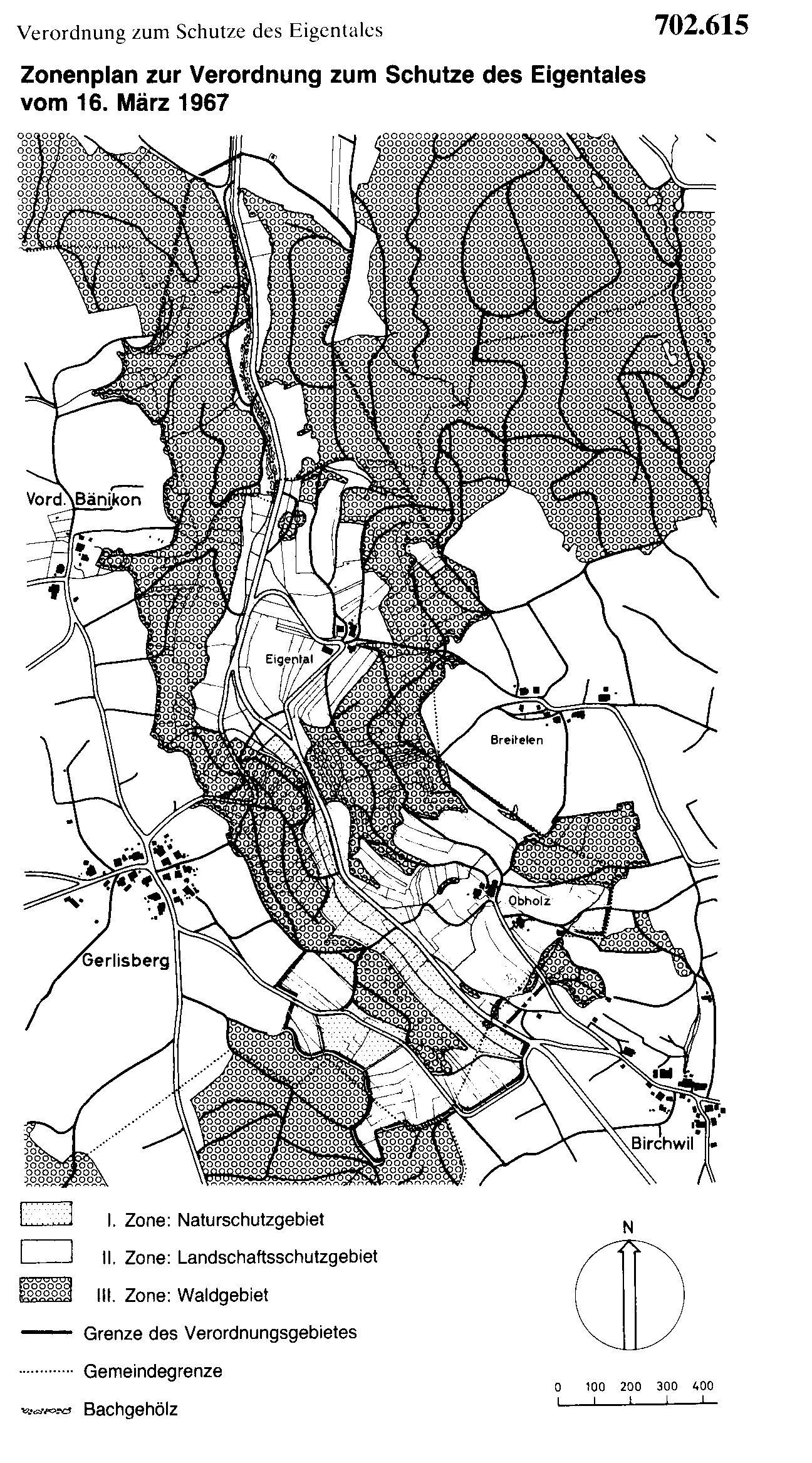 § 3. Die I. Zone (Naturschutzgebiet) umfasst die Talmulde im Oberlauf des Eigentalerbaches sowie dessen Einzugsgebiet an der Strasse Birchwil-Gerlisberg.